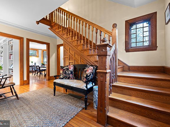 Right out of a storybook, this classic Victorian has graced the South Wayne community for the last 128 years. Quietly nestled on one of the most coveted streets in the neighborhood , this graceful home promises to capture your heart from the moment you arrive. The eloquent front porch beckons one inside where gleaming hardwood floors and exceptional millwork of a by-gone era, set the tone for this beauty. A stunning staircase anchors the First Floor and natural sunlight beams throughout the expansive windows with wavy glass, holding a piece of the properties heritage. The hardwood floors seamlessly carry you throughout the First Floor providing a lovely circular flow beginning with Sitting and Living Rooms that offer flexible opportunities to use as you wish. The large Dining Room calls for abundant toasts and memories to be made, while entertaining will be a breeze as it leads directly into the charming Kitchen. Butcher block countertops , glass framed cabinets, and open display shelving are just some of the features that create the warmth of the Kitchen, with access to deck for outside dining, and back stairs to Second Floor. The First Floor is completed by an Office/Mudroom that overlooks the beautiful Backyard and adorable Powder Room with stained glass window. The impressive staircase leads you to the Second Floor, where two lovely Bedrooms and Hall Bath with claw tub can be enjoyed. In addition, there is a primary Suite with stunning turret windows and private updated Bathroom. The Second Floor is completed by a very large, bright and cherry Laundry Room that will turn doing laundry from a chore to a treat. Two to three additional Bedrooms can be found on the Third Floor, one currently used as a lovely sun drenched Playroom and is completed by a large updated Bathroom. Don't miss your opportunity to own this architectural gem in Radnor Township, with 2 car detached Garage on .39 acres, and on a tree lined street in a prized "WALK-TO-WAYNE" location!! ALL SHOWINGS BEGIN ON THURSDAY FEBRUARY 23rd at NOON!!