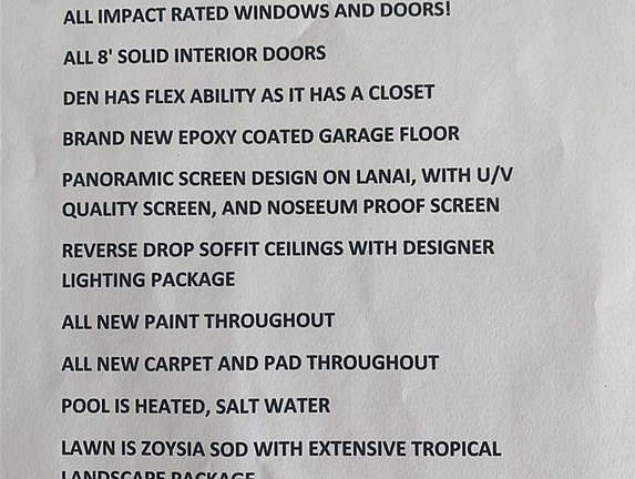 • Fire Sprinkler, French Doors, Pantry, Smoke Detectors, Walk-In Closet(s), Den - Study, Great Room, Laundry in Residence, Screened Lanai/Porch