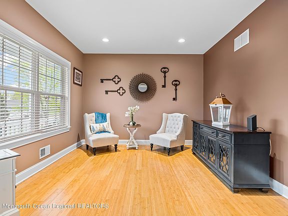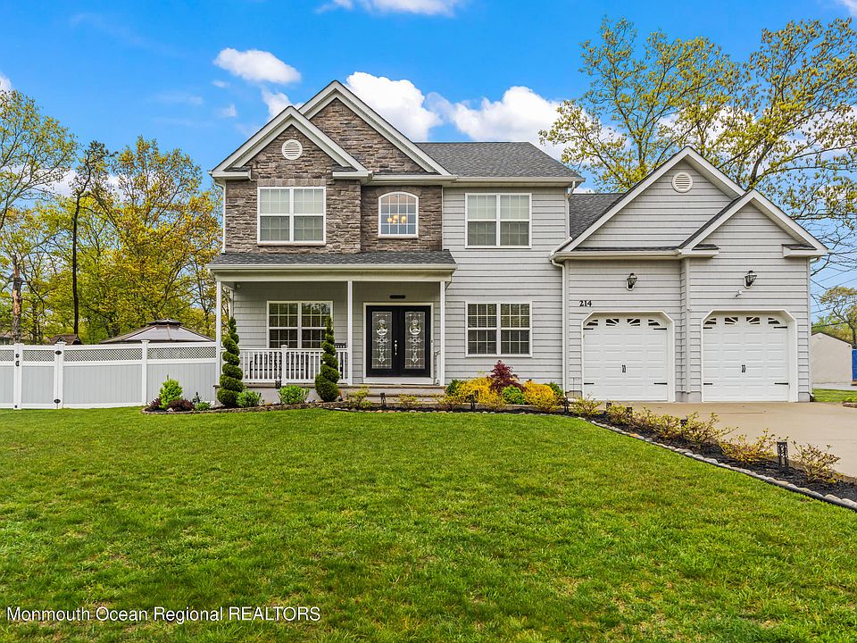 Sit on the front porch and enjoy the comfort of this amazing 5 BR, 3 bath home on a beautiful quiet street. Perfect location to enjoy all of the New Jersey shore points. Wood/Ceramic Floors Throughout. Immaculate kitchen with upgraded cabinets, stainless steel appliances, granite counter tops and large Island perfect for entertaining guests. Living room has soothing gas fire place. Home includes gorgeous Hunter Douglas window treatments throughout . One bedroom located on the first floor with a big closet can be used as an office, play room, or the home gym you always wanted while you still have four more bedrooms upstairs. Master BR with bath has his and her sinks, shower and large soaking tub, two walk in closets .Plenty of Comfort and Space! Great Backyard for entertaining. Vinyl Fence