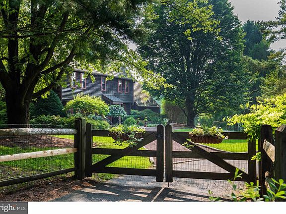 Welcome to this spectacular country home in the heart of Radnor Hunt Country. The home is on 2 glorious acres which backs up to 70 acres of preserved land filed with horses and breath taking views. The home is a uniqued Parson Capen architecture which is early Colonial in style. The gated property is very private with a circular driveway in front. The house sits sidewise on the lot providing views from every window! You enter the home into a welcoming foyer with new cherry hardwood floors. Spilling off the foyer to a large formal living room with a striking marble fronted wood burning fireplace, lots of windows and a greenhouse off the back. The formal dining room is off the other side of the foyer. The cozy family room is next to the eat in kitchen with another huge brick wood burning fireplace. The kitchen is sunny and updated with stainless steel appliances and granite counter tops. The kitchen has sliding glass doors that open to an amazing brick patio protected by a wisteria covered pergola. Next to the kitchen is a large mudroom and a half bathroom connecting to an oversized 2 car garage. On the second floor is the master suite with a beautifully updated bathroom and walk in closets. There are 2 more spacious bedrooms on this floor, one with a cozy separate office. The hall bathroom is also nicely updated. On the third floor there are 2 more stunning sun-filled bedrooms and a large updated jack-n-jill bathroom. The basement is finished to increase the living space with a media area and a wine cellar. Outside the home there are fenced in private rolling lawns, spectacular perennial gardens and a 2 stall barn with tack room and electricity & running water. This home and property are one of a kind with privacy, property and location, location, location!
