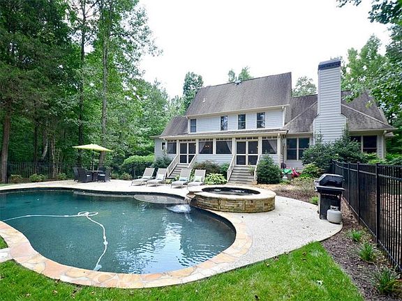 Sophisticated & distinctive 5BD/5.5BA estate tucked on 2+ acres! Highlights include gunite pool w/ spill over stone spa, ideal terrace retreat for entertaining including rec area, movie room, workout room + bath; Top-of-the-line open kitchen, butler's pantry, coffered ceiling & custom wainscoting dining rm; Tranquil master suite & spa + screened porch! Custom touches graced throughout home w/ built-ins, window seats, tile, hardwoods, popular barn style doors, cozy fireplaces! Tankless water heater, new paint/carpet! Private entrance to in-law-suite above 3 car garage!
