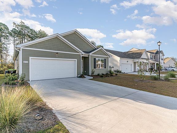 Discover contemporary living at its finest in this nearly new 4-bedroom, 2-bathroom home, nestled in the desirable Heather Glen community. Perfectly positioned a short drive from the picturesque Little River waterfront and the North Carolina-South Carolina border, this property offers an ideal blend of modern comfort and convenient coastal living. This three-month-old home features LVP throughout the main living area and master bedroom, tile in the bathrooms and laundry, and carpet in the guest bedrooms. The bright and airy living room flows seamlessly into the dining area and kitchen, creating a perfect space for entertaining and everyday living. Enjoy the well-appointed kitchen featuring granite countertops, stainless steel appliances, ample cabinetry, a large corner pantry, and a large island with seating. This home offers three generously sized bedrooms in addition to the master suite with an en-suite bathroom and walk-in closet. The bathroom features cultured marble counters and a walk-in shower. The guest bedrooms are located at the front of the home, along with the guest bathroom, laundry room, and plenty of closet space. At the rear of the home, the screened-in porch and wooded view in the backyard offer plenty of opportunities for grilling, entertaining, or relaxing and watching the wildlife. Heather Glen offers a variety of amenities, including a clubhouse with two floors of gathering areas, a fitness room, and a bar area. The rear of the clubhouse offers a large porch and seating area overlooking the pool. Plenty of seating surrounds the pool and provides a beautiful view of the pond. Amenities also include a community garden, dog park, playground area, and numerous activities that can be seen on the community board just inside the clubhouse. Enjoy the best of coastal living with easy access to the Little River waterfront, golf courses, shopping, dining, and entertainment. The property is also conveniently located near the border of North and South Carolina, providing easy access to attractions in both states and the many stunning beaches and attractions in Cherry Grove, North Myrtle Beach, Calabash, Sunset Beach, and more. Experience the perfect combination of modern luxury and coastal charm in this better-than-new Heather Glen home. Don't miss your opportunity to make this stunning property your own. Schedule a showing today and envision your new lifestyle in this vibrant community.