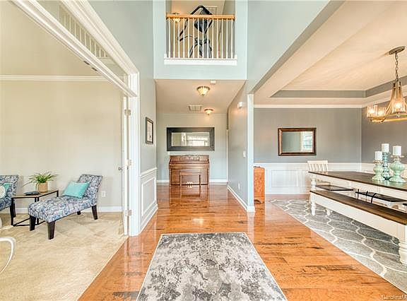 No detail has been overlooked in this lovingly upgraded home. Hand scraped hickory wood floors unite the open floorplan. 2-story foyer is flanked by formal dining room with tray ceiling & flexible office/study with French Doors. Gourmet Chef's Kitchen features 42" antique white cabinets, expansive granite counters, tile backsplash & upgraded appliances including Bosch dishwasher and Kitchenaid Professional Gas Stove. Great room with gas fireplace. Convenient guest suite on the main has full private bath. Hardwood floors continue up the stairs, through the hallway and to the Owner's Suite complete with walk-in closet & deluxe bath. 3 additional bedrooms upstairs, 2 connected by Jack/Jill styled bath + large bonus room/bedroom 6. Privacy fenced backyard with heated in-ground salt water swimming pool and stone accent wall featuring three waterfall descents. Fantastic community offers best the of both Carolinas by combining great location with Fort Mill schools & low county taxes.