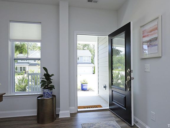 Are you looking for a fabulous move-in ready home in an amazing location, then look no farther! This charming 3 bedroom house with rocking chair front porch has an open floor plan with 9 foot ceilings. The kitchen has sleek white cabinets, with custom tile backsplash, large island with white quartz counters, stainless steel appliances and a gas range. Great storage with a walk-in pantry and a cubby area. A loft area upstairs can be used as playroom or media room and it also has a great spot for an office nook, for those who work from home. The upstairs primary suite has a beautiful ensuite bathroom with large walk-in closet. Custom tiled walk-in shower and dual vanity for lots of storage. A second floor laundry room for convenience. This house sits on a nice flat lot that backs to the woods for privacy and has a patio great for entertaining. So convenient to UNC, Duke and RTP.
