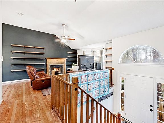 Charming traditional home nestled on a beautiful lush lot! 2 car garage! Main level living room has vaulted ceilings & custom floating shelves. Kitchen has stained cabinets w/ beautiful custom exotic granite & SS appliances. Tons of windows let in natural light throughout! Dining room off kitchen is open to living room. Hardwood floors throughout. Master suite has vaulted ceilings & rustic barn door leading to master bath. Large soaking tub, custom vanity & tile w/ separate shower & walk-in closet! Secondary bedrooms share full hall bath.