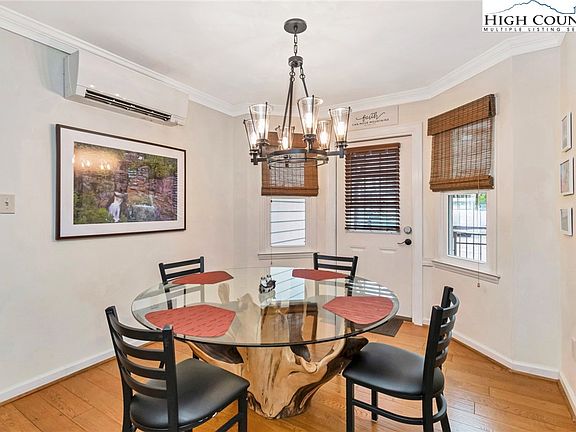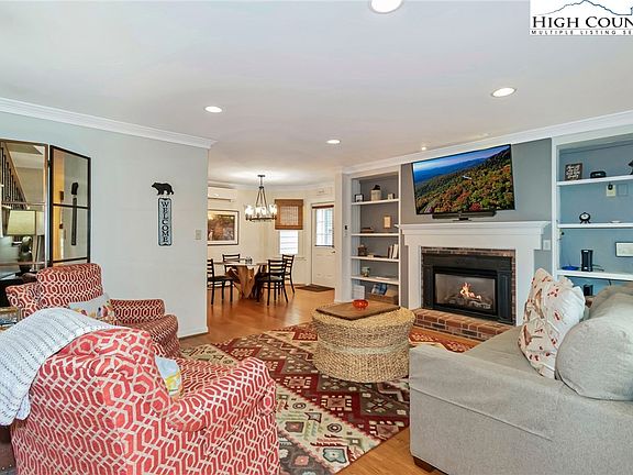 Downtown Blowing Rock! Located just a block from historic Main Street shopping and dining, this is the perfect opportunity for residential living, a second home, or an investment property, and is offered completely furnished. Designated as a commercial business, short-term rentals are permitted, and the current owner has income in excess of $40K so far this year. The entire home has been updated and is in immaculate condition. A two-car attached garage, plus an additional designated parking spot, provides plenty of downtown parking. An additional fridge is located in the garage. The kitchen has stainless steel appliances, stone countertops, cork floors and updated custom cabinets. There is access through the breakfast nook to the fenced patio area with plenty of seating to enjoy seasonal live music offered across the street. Access to the fenced backyard is through the kitchen and is a perfect area for pets. The living room has comfortable seating, a gas remote fireplace, a large HDTV mounted above the fireplace, recessed lighting and crown molding, and built-in bookcases. Also on the ground floor is a half-bath and laundry room. Two king suites with luxurious ensuite bathrooms and walk-in closets are located on the second floor. The third floor has additional sleeping areas or can be used as an office, or media/game room. The home is currently in the rental program with Blue Ridge Mountain Rental Properties and information regarding the rental and future reservations can be found on the website under the name Wander Inn. Showing times are indicated on the showtime schedule. A list of furnishings that will transfer with the sale is included as an attachment.
