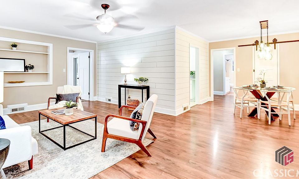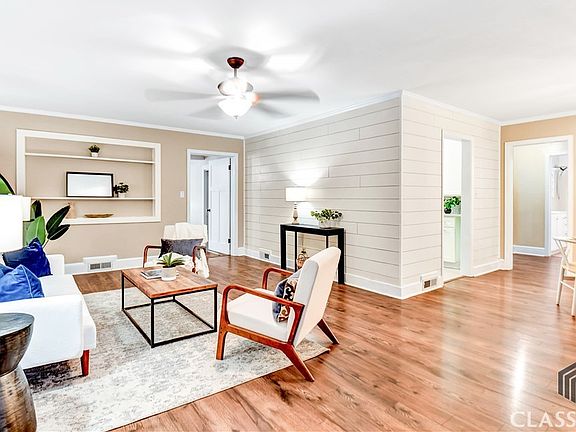 This charming 1950's cottage is tucked away on a quiet street, yet right around the corner from the heart of Five Points and The University of Georgia! All three spacious bedrooms are located on the main level of the home. The primary bedroom is equipped with a recently updated en suite bathroom with zero entry shower and double vanity, and two closets. The home's second full bathroom has a spacious vanity countertop and highlights a fun retro feel with original mosaic tile floors. Additional spaces include a laundry room, office/flex room, and bonus room that would make a great play room, workout room or additional living space. No carpet and the kitchen was recently updated with quartz countertops, marble backsplash, farmhouse sink, and stainless appliances. The oversized deck leads to the large fenced backyard with a beautiful canopy of trees, storage shed, and a full box garden. Front and back yards have irrigation! Don't miss this move-in ready home that's walkable to all the local five points favorites!