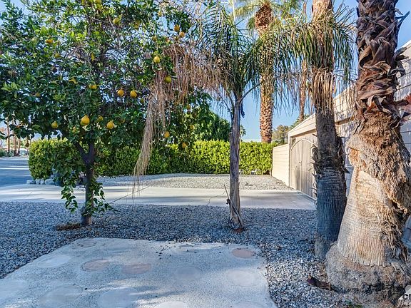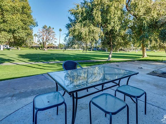 Welcome to Date Palm Country Club! This charming updated home is located on a very unique Large Corner lot with Beautiful Golf Course Views. Very Private covered side Patio. Light and Bright featuring two bedrooms, two bathrooms, 1440 square feet, tile floors, dual pane windows throughout, ductless AC with (4) splits and an additional swamp cooler. This is a split floorplan which can be locked off, each with their own entrance. The extra large master bedroom features an adjoining bath, huge walk in closet and separate entrance. Drywalled thru-out, French doors, large gourmet kitchen, interior laundry/utility room complete with soaking tub. Each bedroom has its own large walk-in closet and private bath. Tastefully updated and ready for you to call home. Don't miss this unique property. Date Palm CC is a Guard Gated Senior 55+ community offering 5 pools, spas, exercise/fitness center, restaurant, golf, tennis, putting green and dog parks. Close proximity to shopping and restaurants.