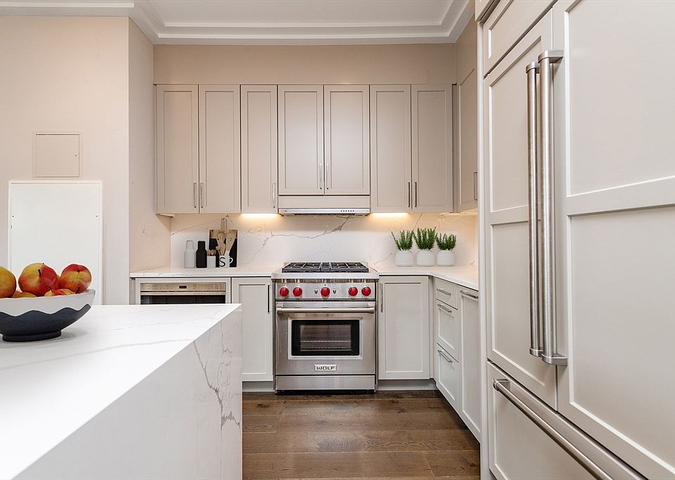 - Features: Flooring - Hardwood, Countertops - Stone/Granite/Solid, Kitchen Island, Stainless Steel Appliances, Lighting - Pendant, Crown Molding