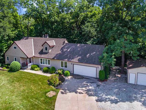 Stunning 1.5 story located on a private, wooded 1.8 acre lot! New 16x20 detached garage. New laminate floors in sunroom & bedrooms. This home boasts 4 bedrooms, 4 baths, 2 fireplaces, walkout finished basement, 4 season room, deck, patio, hardwood floors, sunken living room, main floor master & professional landscaping. Gorgeous year-round views! Over 3,000 finished square feet. Located near I-74 and Morton.