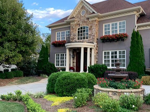 STATELY REGENCY ESTATE HOME W/STONE & BRICK EXTERIOR ON CUL DE SAC! Features: Circular driveway & fountain! 2 master bedrms & 2 laundry rms! Rare basement home w/3 car garage! Grand 2-story entry! Formal din rm & office! Updated Chef's kit w/granite, SS appliances, soft close drawers & walk-in-pantry overlooks hearth room w/fireplace! Covered & screened porches overlook wooded yard! 2nd floor media rm and a bonus rm! All bedrms w/full WIC & baths! Hardwood flooring! Heavy custom trim work! Walk up attic!
