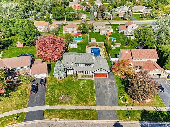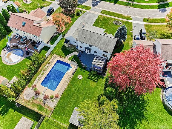 Updated 3 bedroom 2.5 bath home with inground pool, gorgeous new composite deck with vinyl railings (2023) and beautiful yard. Gorgeous hardwood floors on first & second floor, and stairs (2017), porcelain tile foyer and kitchen flooring (2017). Updated kitchen with stainless steel appliances and granite countertops (2019). Spacious family room with gas fireplace and beautiful stacked stone surround & wood mantle (2018). 1st floor laundry and updated powder room with new vanity, toilet and fixtures (2021). Upstairs features three nice sized bedroom with updated bathrooms. Primary bedroom features a walk-in closet and wonderful tiled shower with frameless showers doors (2017). New garage door and opener (2023). New hot water tank (2023). Fresh exterior painted (2023). New 200 amp electric service (2021). Partially finished basement (2019). New pool liner (2019). New driveway (2018), plus extension (2023). New roof (2008). Furnace (2006). Delayed negotiations until Tuesday, October 17th at 5:00 pm. Don't miss the drone video tour!