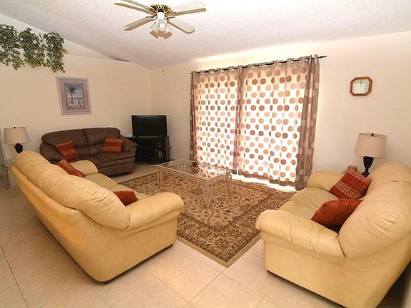 Stunning 3 bedroom 2 bathroom single family home located in the Westridge community. It is fully furnished and very nicely decorated. There is a spacious kitchen , open family room and separate formal dining area. Master bedroom has an ensuite bathroom with dual sinks, garden bath and separate glass shower. The second bedroom includes a queen sized bed and the third bedroom has two twin sized beds. Enough space to have family and friends stay the night. Garage can be used as a games room and there is a ping pong table included. Also for those days at home there is your very own private screened in pool with complete privacy as there are no rear neighbors. The Westridge community has many great amenities such as a playground, fitness center, tennis court and clubhouse. Make sure you view this home before you are too late!!