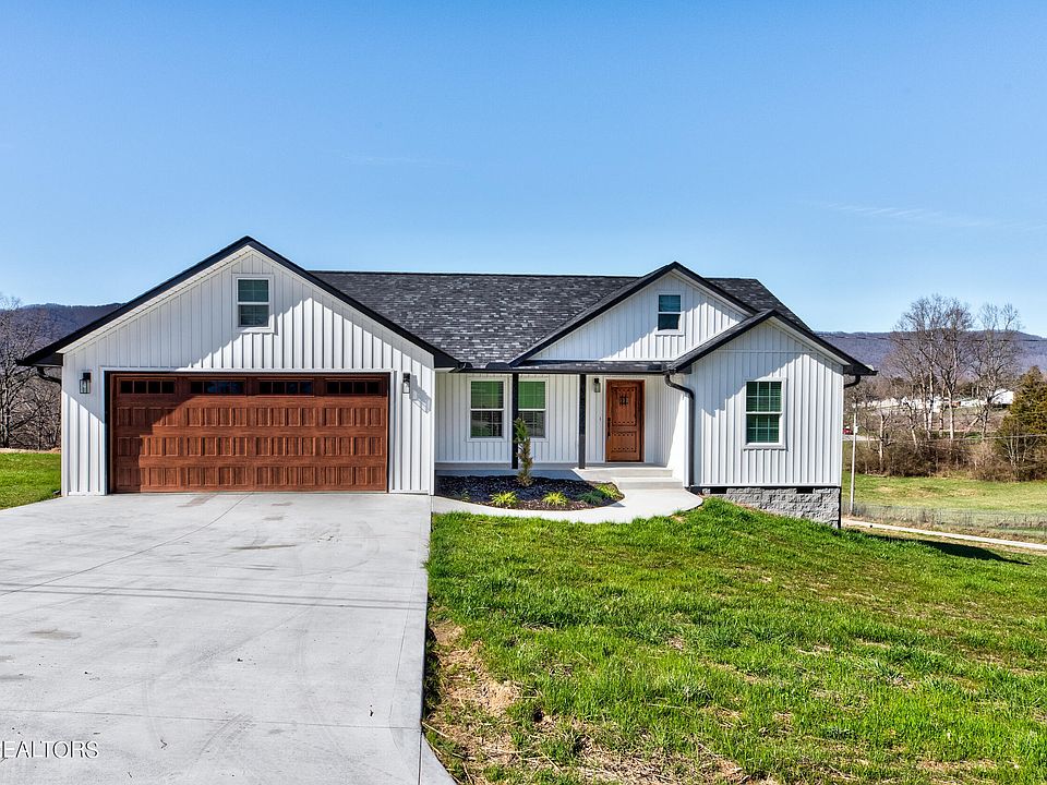 This new construction home features a modern open floor plan, perfect for creating a spacious and inviting living space. The highlight of this home is the rear covered porch, offering a stunning view of the Cumberland Mountains. With ample natural light and a seamless flow from the living area to the outdoor space, this home is ideal for both relaxation and entertaining. The kitchen is accented with a brick wall that offers a unique and wonderful accent to the room. The black accents and fixtures throughout are neutral yet classic. The master shower is tile wall in and the wall safe in the master closet is just one of the unique features the builder has added. The large laundry room has a stainless steel sink to elevate this space. Covered front and rear porches make the most of this lovely setting and the rear views are spectacular. Don't miss the opportunity to experience the beauty and comfort of this exquisite property.