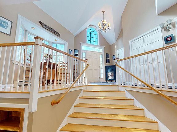 Don't miss this rare chance to own a versatile & unique property featuring two separate homes-each with its own dedicated utilities-perfect for rental income or an in-law setup. The main home offers over 2,500 sq ft of living space & a 4-car garage. Originally built in 1977 & expanded in 1999, this home welcomes you with a dramatic foyer featuring soaring ceilings, Palladian & transom windows, & a flowing open-concept layout. Step into the spacious family room with built-ins and access to a two-tier, wrap-around deck-ideal for outdoor entertaining. The updated kitchen features custom cabinetry, Italian tile flooring, Corian countertops, breakfast bar, & tile backsplash. The living room, with a marble-surround fireplace & built-ins, opens to a formal dining area with sliders to the deck. A remodeled full bath is located on the main level. Two staircases, including a spiral staircase, lead to the 2nd floor, which includes 3 bedrooms & a loft with skylights-perfect for a home office or den. The primary bedroom offers large windows overlooking the park-like grounds, and the oversized bathroom with dual sinks & quartz counters leads to a laundry room and unfinished attic space with access to the one-bay garage-ideal for future expansion. The walk-out lower level includes ample storage and a workshop.The second home offers 2 bedrooms, a bath, kitchen, FP, livingroom, & 1 car garage. HIGHEST AND BEST DUE BY FRIDAY 10/17 AT 5PM. Both homes are on separate septic, electric, water meter, etc. The Seller has rented the home in front, but Buyer and Buyer's agent should do their own due diligence. Property is not sub-dividable