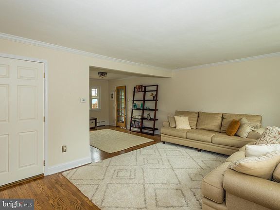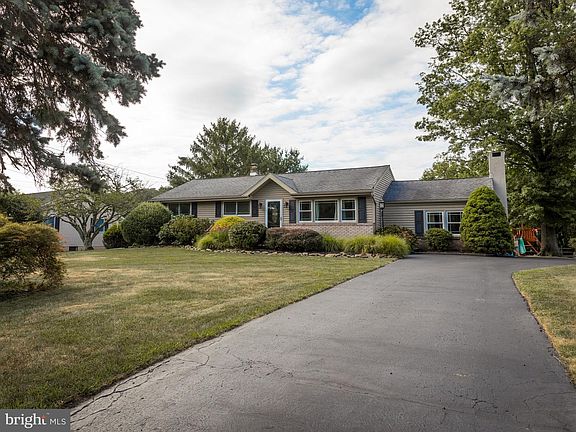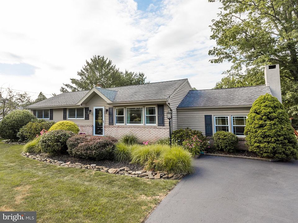 One of a kind ranch home with upgrades throughout, landscaped lot and forest view. When you enter you'll see a spacious entry closet, refinished hardwood flooring, crown molding and baseboards, natural light, and open layout with living room and dining room. The expanded kitchen with breakfast bar and eat-in area features a large bay window overlooking the spacious backyard. There is no shortage of kitchen storage with ample cabinets and pantry closet. The sliding glass doors lead out to the back patio for easy entertaining. Back in and down to the right of the dining room is the welcoming family room including radiant heated floors, a large fireplace with wood beams across the ceiling. The full hallway bathroom is located in the hallway leading to the three bedrooms and features a full tub, granite counter sink, closet storage and neutral tile. The bedrooms each have ceiling fans and matching carpets (hardwood underneath). The master bedroom suite includes a large full bathroom with an oversized walk in shower and linen closet. Downstairs the full basement provides lots of room for storage and use possibilities. The laundry, oil tank, walk in closet and crawl space are included. Outside, find a stamped concrete patio and shed. You'll love the size of the private yard with a forest view! Windows and AC System upgrades with heat pump for efficiency. The neighborhood is complete with a walking trail along the creek, middle school as well as a park with a playground. This rare find in Central Bucks School District will not last long!