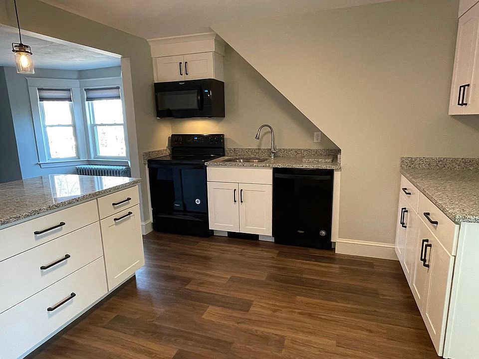 Be the first to inhabit this newly renovated bright spacious apartment. Brand new bathroom and kitchen with granite countertops, new appliances and high quality cabinets and fixtures. There are new floors and all walls have been painted throughout. This unit has two large bonus rooms not shown here that must be seen. The apartment is located in a quiet building with three other units. It is less than one mile from the center of downtown Portsmouth. The unit includes up to two assigned off-street parking spaces. Heat and water is included, as well as snow removal. There is secure, private, on-site storage as well as laundry facilities in the building. This immaculate apartment will only be brand new once! Available immediately. Owner pays heat, water and snow removal. Renter pays electric and wifi if desired. First month's rent and security deposit is due at lease signing. Owner will perform credit check on applicants. Cost to applicant is $14.95. This is what the credit reporting agency charges. NO SMOKING, NO PETS.
