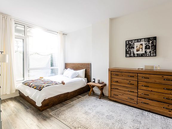 Spanning over two floors, unit IU is the largest in the building. Listed at 1598sf with another 400sf of private outdoor space, this unit is the best priced condo in the neighborhood. Upstairs you'll have your open kitchen living room with distressed flooring through out. The king sized master has 2 full closets, a jack n Jill entrance to the full bath with soaking tub and oversized tile flooring. . Kitchen is furnished with full sized appliances, quartz countertops, and gas stove. To top it off you'll have a small patio to walk outside and sip coffee in the morning sun. Head down the stairs and you'll have a massive loft space with gorgeous white tiles, laundry room, and another full bath and second soaking tub that leads out to your private massive backyard. This space is waiting to be transformed into whatever you would like. Yoga studio, work from home office, cinema room, master bedroom? Located one block from McCarren Park Life at Warehouse 11 is anything but by-the-book; modern design that overlaps decadent five-star amenities take the Lifestyle component to the most luxurious of levels. At Warehouse 11, you'll be properly catered to by your attentive full-time doorman, unwind in style in your modern gallery lounge, exercise to perfection in your state-of-the-art fitness center, be spiritually awakened in your yoga garden, refreshingly wowed in the open-air rooftop sun deck, and for the little ones-- be imaginatively inspired in the children's playroom. Currently occupied and shown by appointment