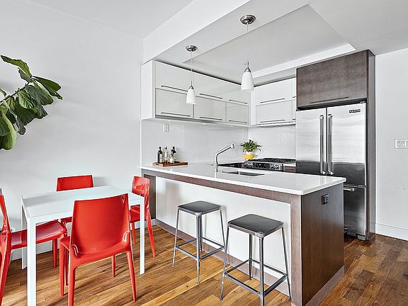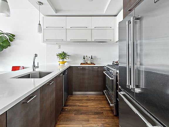 Spacious Williamsburg 2 Bedroom Welcome home to Residence 2U at Warehouse 11. This well-appointed split 2 bedroom, 2 bathroom condo is a quiet Northern facing unit with a private balcony. o Enter into a U shaped kitchen with enormous breakfast bar, high-end appliances, and abundant cabinetry. o A full bathroom features an oversized soaking tub. o The guest bedroom features a large closet and floor to ceiling windows. o A spacious living room provides enough space for seating and dining and provides seamless access to the private balcony. o A hall leads to a stack washer and dryer before reaching the primary suite. o The primary suite offers a gracious walk in closet and large Southeastern windows. o A large en-suite bathroom features a double vanity and glass enclosed walk in shower. o Parking available for sale an additional $75,000. Warehouse 11, located at 214 North 11th Street, is a full sized luxury building where residents enjoy a full time doorman, a modern lobby, a glass enclosed resident lounge with pool table, a full fitness center, play room, and furnished roof deck. The building is in close proximity to McCarren Park which includes incredible green space, a running track, playground, tennis courts and a pool. Williamsburg offers the finest in dining, shopping and nightlife options as well as convenient transportation via the L train. Please note there is a 421A Tax Abatement expiring in 2025.