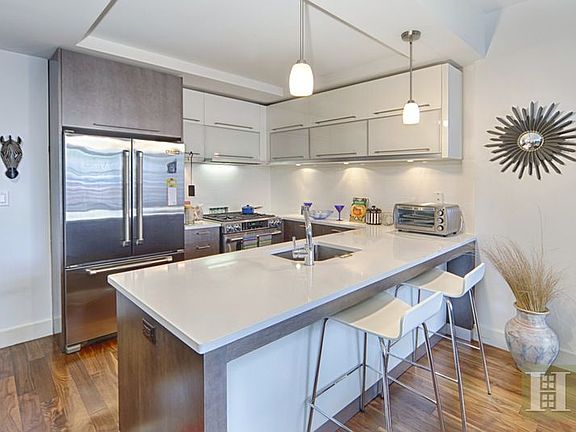 Bright and spacious one bedroom in Williamsburg's most south-after building. Apartment 3D offers an open kitchen with Caesarstone countertops, white lacquer and oak cabinetry, custom backsplash, and top-of-the-line stainless steel appliances. The spacious living room features high ceiling, floor-to-ceiling windows, hardwood floors, and a sunny Juliet balcony with open sky views. The oversized bedroom has great closet space and large windows. The full bathroom is outfitted with chic tile and lava stone, contemporary cabinetry, and a deep soaking tub. Washer/Drier in unit. An on-site covered parking space can be rented separately. Warehouse 11 Condominium is the perfect combination of chic industrial and posh modern. Building amenities include full-time doorman, residents lounge, fitness center, children's playroom and a common roof deck and a private parking garage. Easy access to Manhattan with L and G trains just a few blocks away. CitiBike and McCarren Park is just one block away. Pets are welcome.