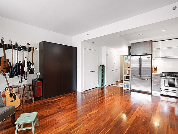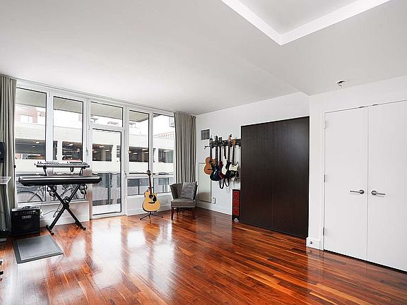 Adjacent to the extra-large living/sleeping area is a wall of double-paned windows which lead to your PRIVATE BALCONY, the best place to enjoy those warm summer nights. The custom made curtains (valued at $4,000) are included in the sale, along with the queen sized Murphy bed (valued at $3,000)!