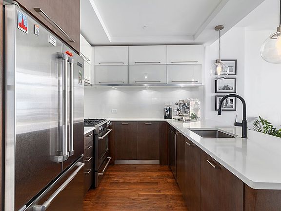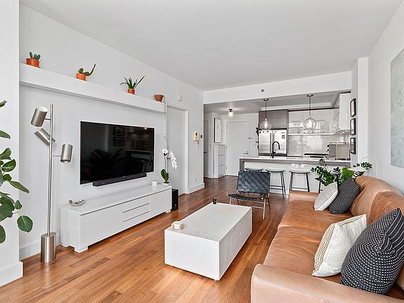 Building amenities include a private covered garage, full-time doorman, residents’ gallery WiFi lounge, state-of-the-art fitness center, yoga garden, children’s playroom and sun deck with Manhattan skyline views. Low monthly costs and 421A tax abatement, in place until 2025.