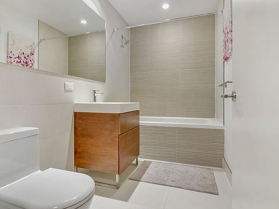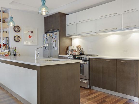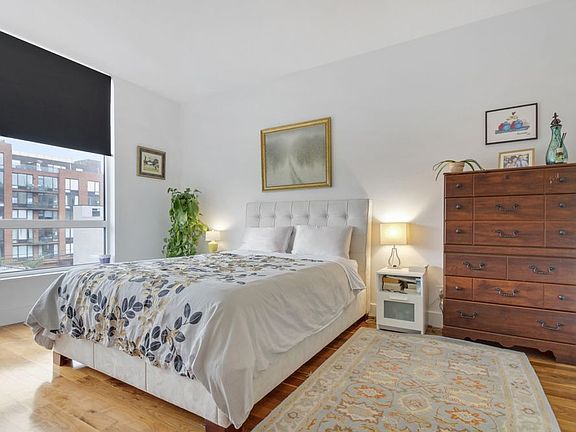 Enjoy contemporary living in a beautifully maintained, winged 2 bedroom, 2 bath home. An inviting open space with ample room for living, dining, and entertaining. Features include, private balcony, oversized windows with southern exposure, skyline views, and warm natural wood flooring throughout. Served by a well appointed chef's kitchen, featuring professional-grade, stainless steel Jenn-Air appliances, Caesarstone countertop, custom backsplash, white lacquer and dark walnut cabinets provide plenty of storage, and a generously sized breakfast bar that easily seats four. The spacious en suite master bedroom features a spa-like marble bath with an enclosed glass shower and a walk-in closet. The second bedroom offers ample closet space and views of the courtyard. Off the entrance is a large second bathroom that features a deep soaking tub, marble accents, and washer/dryer. Located in the heart of North Williamsburg, Warehouse 11 is a full service building offering 24-hour concierge, fitness center, roof deck, children's playroom, lounge, and courtyard.