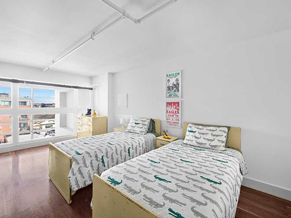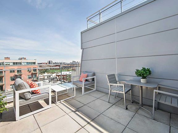 Welcome to this penthouse two-bedroom, two-bathroom duplex apartment with a private terrace at the coveted Warehouse Eleven! Atrium windows and 20ft high ceilings (approximately) are the unique features that make this apartment a rarity. Incorporated into a vast 1,264sqft, the main living area is comprised of floor to ceiling windows that flood the space with light and offer views of McCarren Park. The open-concept kitchen beside one of two full bathrooms supplies optimal use of space complimented by custom cabinetry, a stainless steel Jenn-Air refrigerator and dishwasher, as well as a Bosch washer and dryer. The living room encompasses space to comfortably dine and leisure, as well as append additional seating to the Caesar stone countertops. The first bedroom adjacent to the living area can effortlessly accommodate a king-sized bed and is greeted by the same views as the living area. As you proceed up the staircase you will find your very own private terrace which really highlights your views. The enormous second bedroom can be found straight passed the terrace. Not only is it sizable, but comes equipped with a walk in closet including shelving for extra storage space. This second bedroom is adjacent to the second full-bath as well. This 24 hour doorman, elevator building has a fitness center, children's playroom, common garden area, lounge, and a massive roof deck recently renovated with new landscaping, furniture, and pergolas. It is one block from McCarren Park which features tennis courts, a track, and baseball / basketball courts. Many top notch restaurants like Michelin Star Lilia, Leuca, and Reynard are nearby as well hot spots like Kinfolk, Output, Brooklyn Bowl, and Westlight. Easy transportation with the G, L trains and the NYC Ferry.