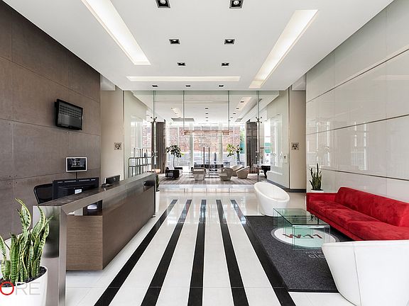 Idyllic one-bedroom in the heart of Williamsburg with floor-to-ceiling windows and a French balcony. Enjoy the modern open kitchen surrounded by sleek cabinetry and plenty of white countertops. The spacious bedroom easily accommodates a king-size bed and furnishings. In addition to another large closet in the foyer, there is a private storage unit in the basement, and in-unit washer/dryer. Additional luxuries include a custom glass-enclosed soaking tub in the master bath, as well as hardwood floors and a Nest temperature control system. Residents of 214 North 11th Street enjoy a full-time doorman, resident's lounge with billiards, fitness center, children's playroom, bike room and a roof deck with panoramic views. This pet-friendly building is near famed McCarren Park, as well as the L and G trains and the North Williamsburg Landing ferry dock. Abatement expires 2025.