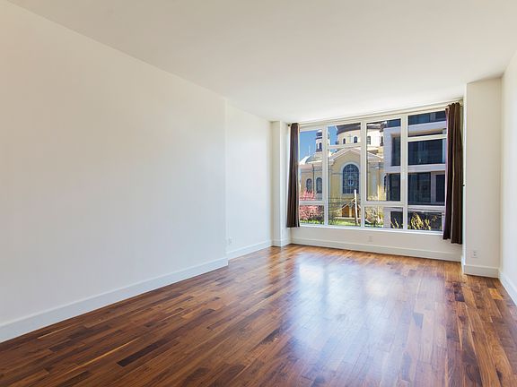 Enjoy Williamsburg living at its best in this sleek, stylish 2 bedroom 2 bathroom rental apartment with a private balcony in the full-service Warehouse Eleven, just a block from McCarren Park! Located in one of the best lines in the building, Apartment 3K offers 1098 square feet of impeccably-designed modern living space graced by floor-to-ceiling window walls to the north and south that let the sun shine through all day, as well as beautiful wide plank hardwood floors, a huge open living/dining room, a premium kitchen adorned with white Caesarstone counters, a breakfast bar and Jenn-Air stainless appliances, and a finely-finished contemporary bath. Three generously-sized custom closets including a walk-in amply accommodate your storage needs. Tranquil views of an historic cathedral and lovely garden across the way enhance the quiet ambiance. Right downstairs you have it all virtually at your disposal thanks to a prime address location near the waterfront, Bedford L subway, great restaurants and boutiques, a convenient food market plus fresh weekly selections at the McCarren Park farmer's market. Within this luxurious building, residents are treated royally with outstanding amenities that include a full-time doorman/concierge, fitness center, furnished courtyard, fabulous roof deck, children's play room and lounge/game room.