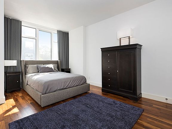 Step into this oversized 1 bedroom apartment with balcony in the designer finished full service building Warehouse 11 located in prime North Williamsburg. This light filled unit features central air / heat controlled by Nest Thermostat, high end FULL size washer and dryer, large bedroom with custom shades, and plenty of closet space featuring Elfa organizers! Step into your open kitchen concept with stainless steel Jenn Air appliances, dishwasher, white Caesarstone countertops and a beautiful oversized ceiling fan. The spa bathroom features a extra deep soaking tup and large recessed medicine cabinet and custom lighting. Enjoy tranquil views of McCarran park from your built in desk or your Juliette balcony. This modern full service building features a 24hr doorman, a huge rooftop with views of Williamsburg and Greenpoint, an expansive fitness center, bike storage, kids playroom and large common lounge complete with billiards table and WiFi where you can have a get together with family or friends. Warehouse 11 is known for its location, just steps to both the L and G trains, boutiques, markets, coffee shops, restaurants, services, nightlife and waterfront festivities. It is perfectly situated just 1 short block from McCarren Park where every Saturday is a farmers market and you have access to a running track, tennis courts, handball courts, baseball diamonds, soccer field, basketball court, swimming pools, playground and dog parks. Come and see!