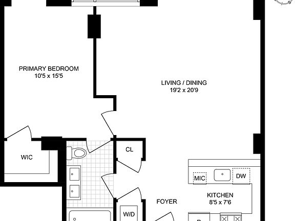 Prime Williamsburg. Moments from McCarren Park. Private Balcony. Washer / Dryer In-Unit. Walk-in Closet. 1 Bed / 1 Bath in northern Williamsburg with floor-to-ceiling windows which bathe this urban oasis with natural light. Enjoy the view of McCarren Park from your private outdoor terrace, and enjoy an open concept kitchen and living room area. The spacious bedroom has a walk-in-closet, and the bathroom is accessible via the living area and bedroom and features dual-faucet sinks. Located in the heart of Williamsburg, this building offers a wide range of luxurious amenities including a 24-hour concierge, fitness center, lounge area, courtyard, and roof deck with Manhattan skyline views. The best that Williamsburg has to offer lies right outside the building door including one-of-a-kind boutiques, eateries, waterfront parks, and easy access into Manhattan and Brooklyn via the L train at Bedford Avenue and water ferry.