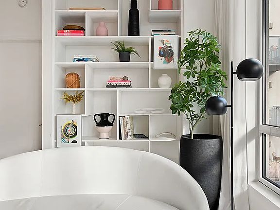 Split from the public areas are two generously proportioned bedrooms. In the main suite, you'll delight in the walk-in closet and sleek en suite bathroom with glass walk-in rain shower and gorgeous trough sink. The opposite bedroom has a sunny south-facing window and a large closet.