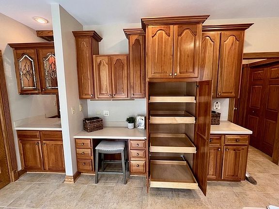 - Features: Kitchen (Eating Area-Breakfast Bar, Custom Cabinetry, Pantry, SolidSurfaceCounter), Flooring (Ceramic Tile), Window Treatments (Blinds)