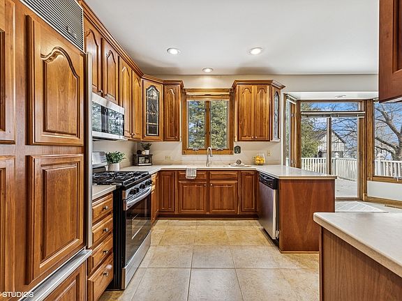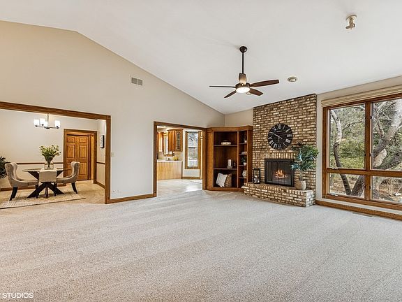 This spacious RANCH home is going to check A LOT of boxes! You will LOVE and appreciate the trim work, molding and QUALITY craftsmanship of this hard to find custom home! Enjoy a beautiful OPEN FLOOR PLAN, filled with natural light, a generous foyer entrance and vaulted 13' family room ceilings at the peak. The home boasts a generous family room with a masonry wood burning fireplace, solid wood doors, 9 and 10' ceilings, fresh neutral paint and NEW carpet throughout. The kitchen offers ample 42" cabinetry, NEW stainless steel appliances, a Sub Zero refrigerator and opens to views of the PRIVATE back yard and a spacious deck for your morning coffee or evening grilling. Beautiful french glass pocket doors tuck away seamlessly, but available to separate the kitchen and family room living spaces. The elegant dining room features tray molded ceilings with beautiful ambient lighting and a wet bar. The primary suite is generous in size, tray ceilings and the bath complete with double vanity, plenty of cabinets for storage and a walk-in closet. There are 2 add'l bedrooms and a full bath on the main level. One would make an ideal office, with custom built-in cabinets already there. The deep pour lower level is a spacious FINISHED WALKOUT, with abundant natural light, a 2nd masonry fireplace, beautiful wood bar and lovely wine cellar, perfect for entertaining. A 4th bdrm./flex room perfect for bedroom, fitness, craft room, playroom... whatever your needs might look like for a 19 x 13 finished room with a closet. There is a 3rd FULL bath and PLENTY of storage in the basement as well. Enjoy radiant heated floors on both levels. What a fun and beautiful lifestyle, located just 1/2 mile from downtown McHenry's scenic Riverwalk, restaurants, shopping, festivals, the Fox River, McHenry Country Club and more. You are also just minutes from Moraine Hills State Park, Stickney Run conservation area, multiple golf courses, Knox Park/Pool, Northwestern Medicine Hospital and more. So much to love about this home. Move in and enjoy. QUICK CLOSE possible.