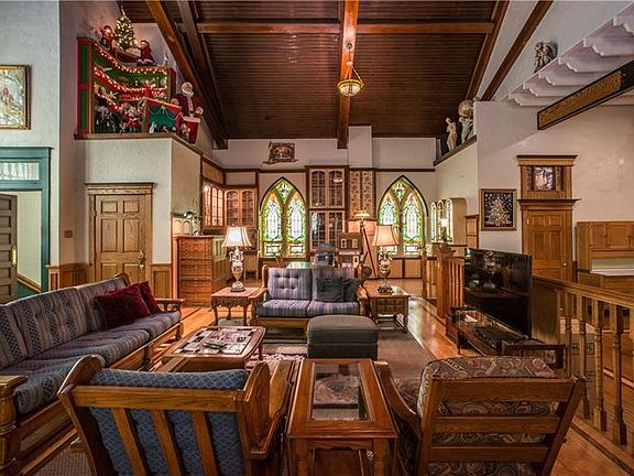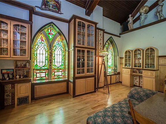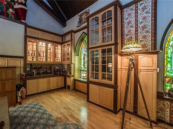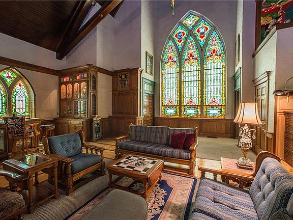 Unique and absolutely heavenly abode! Church circa 1907 transformed by artist woodworker to spectacular residence with wide open living quarters for the Living dining, kitchen and massive bar along with soaring ceilings and original stained glass windows that souround the space.The main level has a huge workshop that can easily be converted to a gameroom along with 2 additional rooms that can be bedrooms and a full "extra"kitchen , laundry and bath. The rear yard is tranquil and private with an Angel garden waterfall, built in outdoor kitchen and fireplace along with a galvanized garden behind the huge detached 2 car garage. Perfect viewing of Canonsburg Fireworks from the yard and quick walk to the restaurants and shops on Pike St T1 Zoning allows residential and many commercial uses.