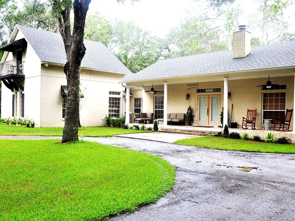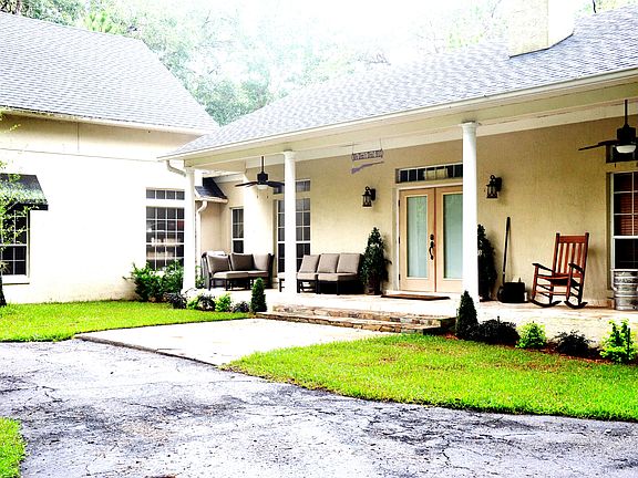 MOTIVATED SELLER! Welcome to this beautiful remodeled home situated on 5 acres yet only +/- 35 minutes from downtown! Enter through the electronic gated to your slice of privacy! Relax & enjoy nature on the front porch, which has travertine flooring that gives an elegant appearance or chill out in the backyard by the private pool. Enter the front door to the living room with a wood burning fireplace. The split floor plan gives everyone plenty of privacy and space. One guest bedroom is being used as an office. There is a spiral staircase leading to the bonus/media room that has French doors overlooking the well-manicured front yard. Features included are: an inside utility room, 2 A/C units with one being high efficiency, Trane XL19i heat pump with a "cleaneffects" whole house particle filter, 2 hot water heaters with one being a "high efficiency"hybrid heater, Towel built-ins in the master bathroom, gutters, an irrigation system, and a new gate opener! Ceramic tile throughout, hard wood in bonus/media room, and marble in guest bath. If you have toys (boats, jet-skis, campers, etc.), there is plenty of room to park them under the metal roofed pole barn that can provide cover for six cars. Keep your lawn equipment or tools in the shed out back. This home has it all - nature and peacefulness while being a short drive to shopping, schools, beaches, major roads, highways and more. This is a home that you will want to see for yourself. Make your appointment today!