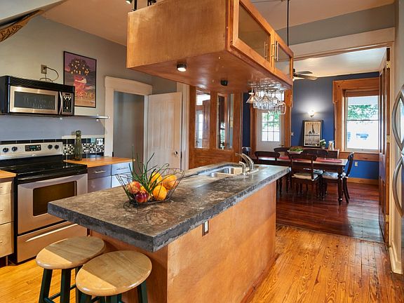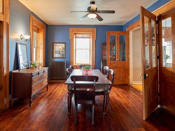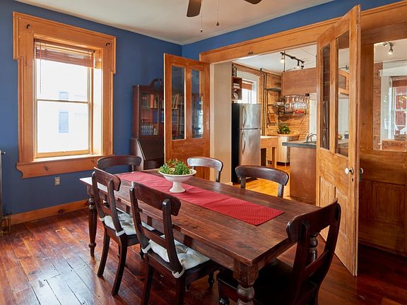 Home looking for owner to treasure this classic & beautifully remodeled/renovated 2 story home built in 1860. Covered front porch welcomes you as you enter the home with a view of the soaring ceilings, and original and restored pine floors. The large dining room with parlor doors in each direction lead you to the kitchen and den/office area. The kitchen, with exposed brick walls, SS cabinets, butcher block and concrete countertops gives this home a timeless touch. Walk from the kitchen to the cozy living room with exposed brick walls, ceiling beams, and wood stove which completes the 1st floor. As you reach the landing of the 2nd floor, you see the natural light pour in from 3 nice sized bedrooms that are filled w/ windows. Main bathroom is updated w/ new light fixtures, 2 vanities, and ceramic tile. Here you will find a hide-away laundry room with shelving and utility light for convenience. A nice sized room is at the back of bathroom for linens and extra storage which leads to an outdoor patio covered for shade & relaxation. The attic is fully insulated, and ready for finish work and paint to create an extra living space/BR and full bath. The basement has ample space suitable for a workshop with utility light. There is even a cold cellar perfect for canned food storage and an extra room that the previous owners used for a gym. Hurry & schedule your personal tour today!