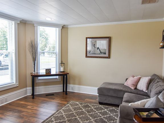 Take a front seat at next years Haubstadt Summerfest Parade! Close to St. Peter and Paul Playground, Church and School. Modern farmhouse design this wonderful 3 bedroom 2 full bath home with 1497 sq ft where you'll find great space, wonderful yard and even better neighbors! Adorable living room off the breezeway features character with big windows with 2' blinds, LVT wood floors similar to the most in-style rustic wood floors and tall baseboards. One main floor bedroom has 2 new Pella windows and LVT floor. A large dining room is off the rustic kitchen with white painted cabinets, desk, trash compactor, range/oven, dishwasher '17 and microwave. A laundry room with pantry closet is conveniently off the garage and kitchen as well as a full updated bath. Upstairs leads to 2 additional bedrooms. A built in hutch for storage in the hallway. One bedroom is remodeled with drywall, carpet and closet. A full hall bath with walk in shower and then a 3rd bedroom with nice walk in attic storage. The oversized attached garage is 25.10 x 27 and will be great for extended vehicle parking, side by sides and storage. Wonderful large flat yard with big patio, pergola, yard barn and nicely fenced. Per seller roof 2012, some parts in furnace & A/C replaced 2015, carpet upstairs 2015 new floor main 2018, new security camera system.