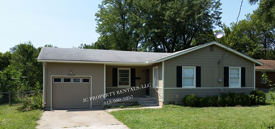 3 bdr/1 bath Ranch style home featuring: updated Kitchen/Dining room with great cabinet space that includes the frig/freezer w/water & ice, dishwasher, stove, microwave and garbage disposal, updated Bath, nice open Living Room, patio in large fenced backyard with mature shade trees, added insulation and new windows for energy efficiency, washer/dryer hook-ups off kitchen. $1600 month. Dogs welcome, no cats. No smoking in home. Brookside Park behind house. Within walking distance of banks, grocery store, restaurants and more! Quiet neighborhood close to elem and middle school in the award winning Gardner-Edgerton School District. Easy access to hwy. Our professional management team and 24 hour emergency maintenance are second to none! Call today and discover the comfortable living and quality service that make JC Property Rentals a great choice. 214 North White Drive.