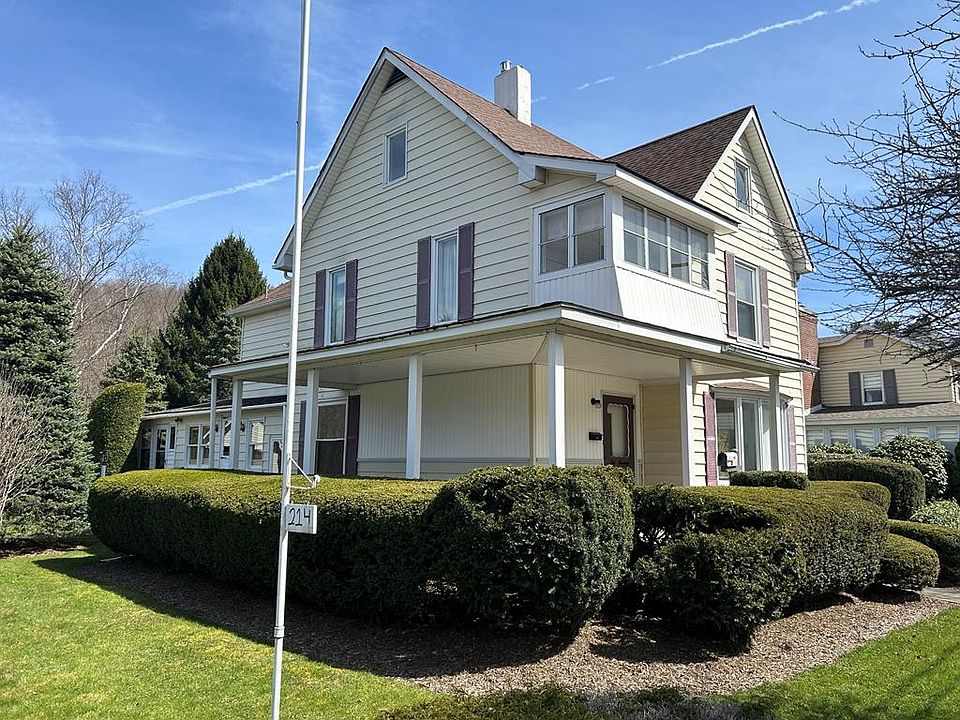 Plenty of space and opportunities within this 4 bedroom home in Blossburg. Large kitchen with lots of windows, cupboards and counterspace. Home also offers a family room with a huge bay window and a large living room with a gas fireplace and custom built in shelving. There are 4 bedrooms on the second level as well as full bath. Enjoy the views from the upstairs enclosed sun porch or overlook your back yard from the sunroom downstairs. Lots of extra storage and a workshop in the 2 car detached garage. Full basement with two furnaces. The main heating system is hot water baseboard but there is a coal/wood burning forced hot air furnace as well! A walk-up attic and a 1/2 bath add to the conveniences of this home. New Generac generator installed in 2023. Nicely maintained yard and landscaping. Quick access to Route 15/I99 and ready for your tour!