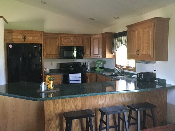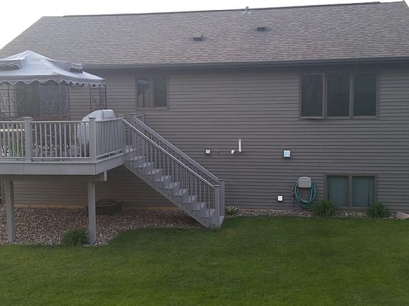 Real hardwood floors in living room and hallway. Ceramic tile in kitchen, dining, and foyer. New carpet in all 4 bedrooms in March 2016. Partially painted in most rooms downstairs & part of upstairs April 2016. Maintenance free deck. New hot water heater. Appliances stay. No back yard neighbors. 25 minutes from Rochester, Mn.
