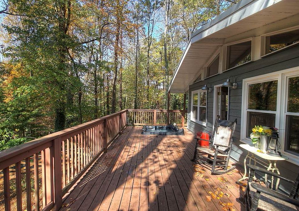 Beautifully Renovated cottage located in serene Mountain Park - Truly the perfect escape from the city's hustle & bustle-but still only minutes to shops & fine dining in Woodstock or Roswell - the home features hardwood floors thru-out, a 6 person hot tub, slate tile floors in kitchen & baths, a real wood burning firepalce, Claw foot Tub & custom built in cabinetry thru-out, updated lighting - detached garage w/two large finished rooms above - Just add a bath & you have a true Guest Aptartment. 2 Lakes only a few blocks away-perfect for Fishing, Kayaking & Paddleboarding. HVAC only 7 yrs old, Metal roof only 7 yrs old, all toilets are low flow - Total sq ft 3,019 - 1759 Above grade & 1192 of beautifully finished basement with a large second master bath - not shown on tax records