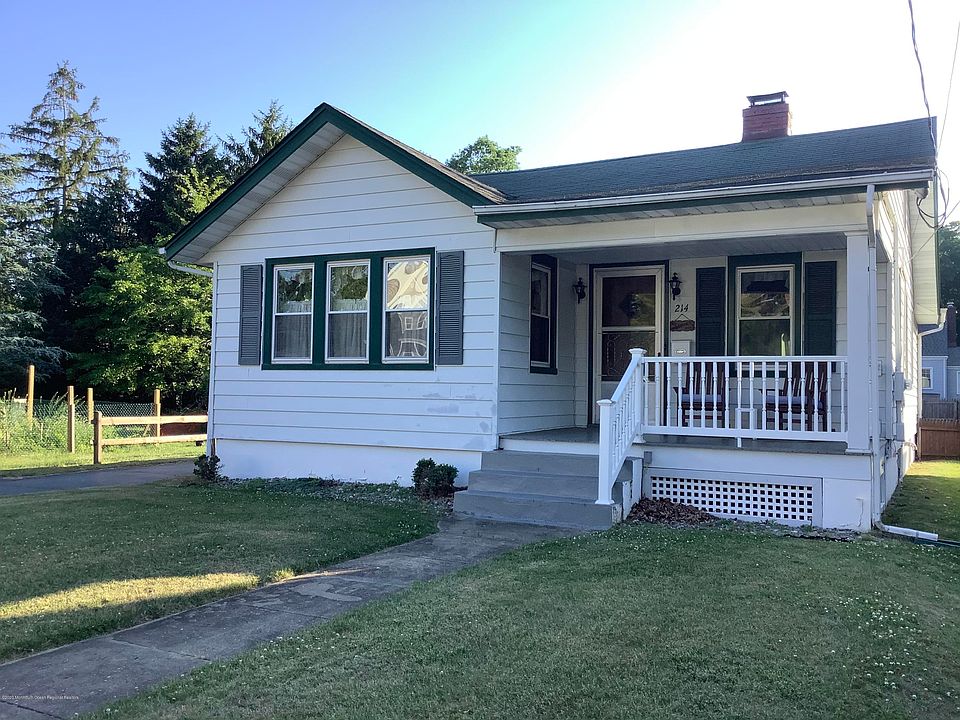 Charming 2 bedroom Ranch in Oakhurst. Oversized large lot (49 x 130 x 77 x 128) has room for pool and expansion possibilities. Living Room with Glacier Bay wood stove insert, Dining room with Beamed Ceilings, Den, Eat in kitchen with Breakfast nook, 2 bedrooms and finished walk up attic room. Full basement and Detached 2 car garage plus unfinished storage area in walk up attic. Yard is wider in backyard than front, extra parcel of land makes rear yard 77' wide allowing for expansion possibilities and room for a pool. 2020-08-16