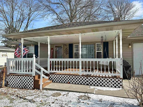 Offers Received. Offer deadline, Monday, 1/22 at 6pm. Spacious 1646 S.F. Ranch on a Part Basement (partially finished) featuring Wood burning Fireplace, newer Hi-efficient HVAC in 2018, a humidifier and recent Water Heater in 2021. Also offers a fenced-in rear yard (About another 10 feet of yard outside the fence) & the new swing set stays! Garage is oversized at 24'x25' with a pull-down stairs for easy storage! Come springtime, you will enjoy the 11'x19'covered front porch with a swing. Gorgeous wood-grain fiberglass front door with leaded glass design and storm door. Kitchen features Newer Stainless Electric range, microwave, dishwasher and French door LG refrigerator and has a pantry. Huge Primary Suite with Laced Cathedral Ceiling with bath including a Jetted Tub and Window for natural light. Close to downtown & walking distance to the golf course & bowling alley. Partial basement offers gas fireplace and extra any purpose room. Extra wide driveway!