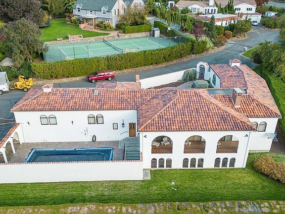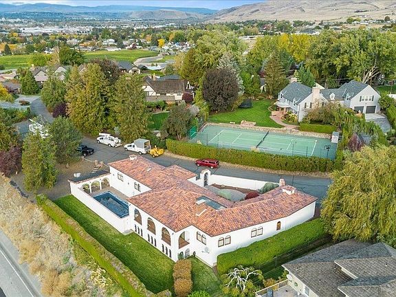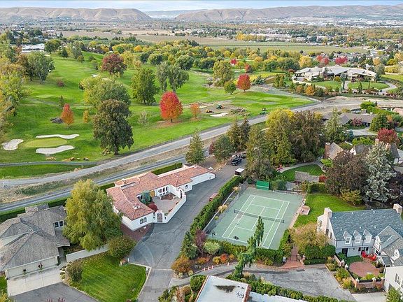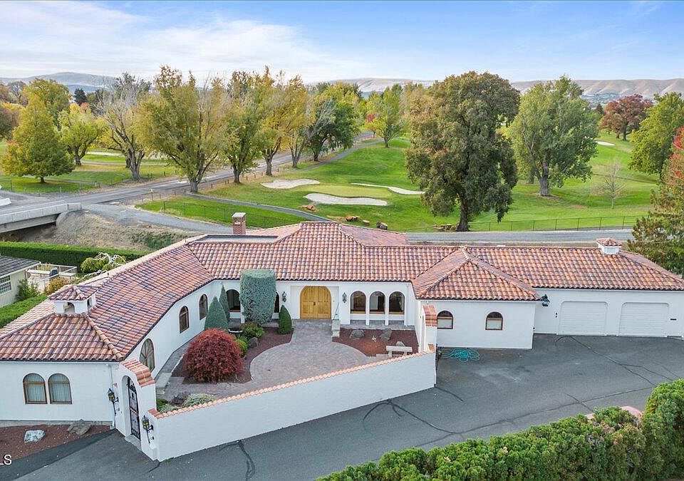 This hidden gem is tucked away in an amazing, quiet and central location overlooking the Yakima Country Club golf course. With over 3700 sqft of useable space, this incredible spacious Mediterranean style 3bedroom, 2.5bath home is sure to please with high-quality craftmanship throughout, ranging from the tile work, arched windows and doorways, cathedral ceilings, custom built-ins, hand carved doors, and lots of storage, to stucco siding and many other features. Enjoy the scenic mountain view from the comfort of your sun terrace and cozy up in front of the double-sided gas fire-place in the winter. The hedged and treed lower level offers you privacy to entertain your guests from the comfort of your billiard room, terrace and covered patio and enjoy a swim in your own heated inground pool! The generously sized ensuite off of the master bedroom, offers double walk-in closets, double sinks, powder room, large shower and a jetted tub! This truly unique property also comes with a well-maintained courtyard and a large attached double garage. Don't miss out on this rare opportunity and schedule your own private showing today!