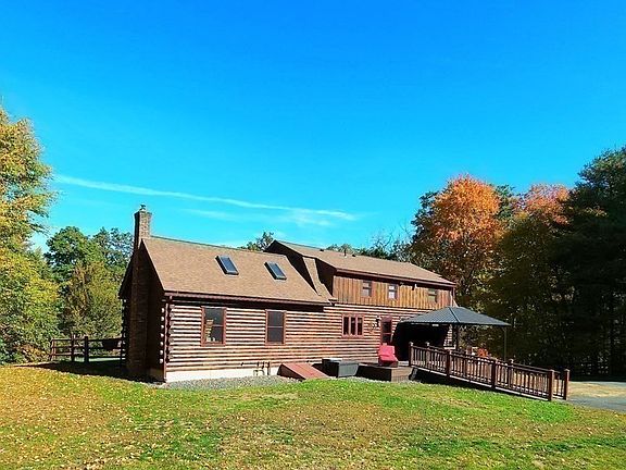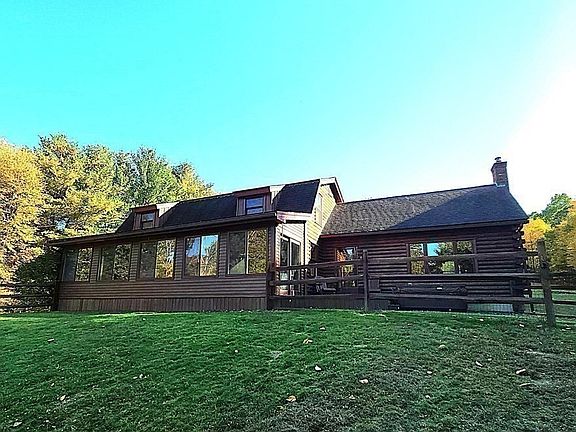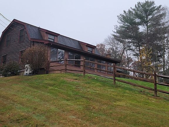 Log Home sitting on a private hill on 5.51 acres! This amazing Authentic custom built LOG Home built in 1984 displays pride in ownership combining craftsmanship with unique features & character. Open floor plan & cathedral ceilings will impress you and the exposed beams add to the character. The living room has a cathedral ceiling w/large stone hearth complete with gas stove for added warmth. Newer windows, hot air furnace, central air, 2 1/2 baths, 3 large bedrooms, enclosed heated 4 season room off the front of the house, new back deck, a finished family room & separate office in the basement & first floor laundry. Detached 2 car garage is fully tiled, heated & air conditioned w/ water.! A car lover dream. Passing Title V. This property is turnkey ready to go! Horses permitted. This private location is centrally located between Routes 9& 32 and is only minutes from the Mass Pike and the Quabbin Reservoir. If you have ever dreamed of owning a log home this is this is the one