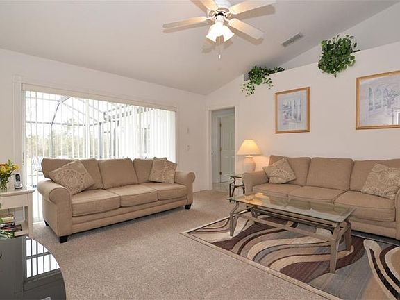 **NO REAR NEIGHBORS ** Your own beautiful PERSONAL PARADISE in Paradise Woods. - The large lot (62x110) backs up to retention and greenbelt areas. **PARADISE OUTSIDE: SPARKLING HEATED POOL! Huge 28' x 14' heated swimming pool and jacuzzi, with oversized/extended deck area and covered patio, with ceiling fan. Perfect for entertaining or just enjoying the Florida lifestyle in your private Paradise. ** PARADISE INSIDE: TWO EN-SUITES! - Two Master Suites, one with direct access to the large patio/pool area. Four bedrooms, three baths. Solid stone counter tops in the bathrooms. Spacious living room with triple sliding doors opening to the pool and patio. Open kitchen with convenient breakfast bar. Ceramic tile in entrance, kitchen, hallway and bathrooms. Ceiling fans in all bedrooms, living room and patio. Security system, Rain gutters. Everything is in "like-new" condition. Paradise Woods is a gated community in an excellent location, close to everything (Reunion, Disney, Restaurants/Shopping), yet out in the country - peaceful and quiet.