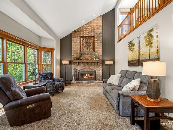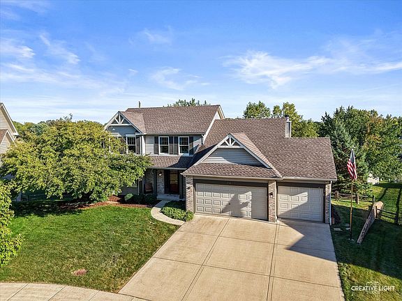 This unique home has a finished walk out basement with a huge rec room, adorable bathroom, a storage and utility room. There are Andersen double pane windows, fresh paint, real hardwood floors, 3 bedrooms + a huge loft, a concrete drive and the furnace, A/C, water softener, roof and appliances have all been replaced. The supersized 3 car garage is expanded to accommodate even the largest of vehicles with the exterior bay measuring in at 22ft long and 9ft wide. While sitting on the multi-level, maintenance free deck, enjoying the views of the lake and overlooking this almost 1/2 acre lot - you will know you have found your new home! The main floor has an updated kitchen with shaker style cabinets, granite and stainless appliances. The vaulted ceiling in the family room opens to the loft upstairs and the floor to ceiling brick fireplace is a beautiful focal point. Rounding out the first floor is the laundry room, dining room and living room - plenty of space for everyone! Upstairs you will discover a primary suite with a walk-in closet and an updated bathroom complete with a heated ceramic floor, a custom shower with a ceramic surround. The multi-purpose loft and the other 2 bedrooms all share a full hallway bathroom, have ceiling fans/lights and the closets are spacious. Located in Lakeview Estates, this home is just 6 houses down from the neighborhood park, across Grove Rd is the water park, sled hill, soccer fields, skate park and the local elementary. Hop on your bike and you are quick ride into the quaint downtown Oswego with its festivals, parades, restaurants and shops. These original owners have created the perfect combination of quality upgrades that have been meticulously maintained. Welcome home!