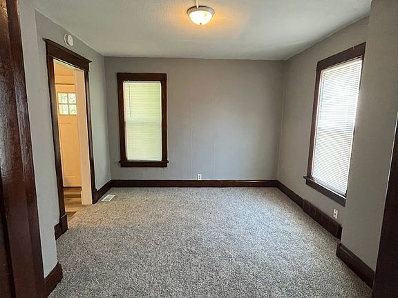 1 1/2 story home is move in ready. Cut enclosed front porch. Main floor features living room, dining room and updated kitchen. Upstairs has 2 large bedrooms remodeled full bath. Lower level is dry with laundry area. Outside has detached over-sized single garage and good size yard. All new window, carpet paint and so much more.